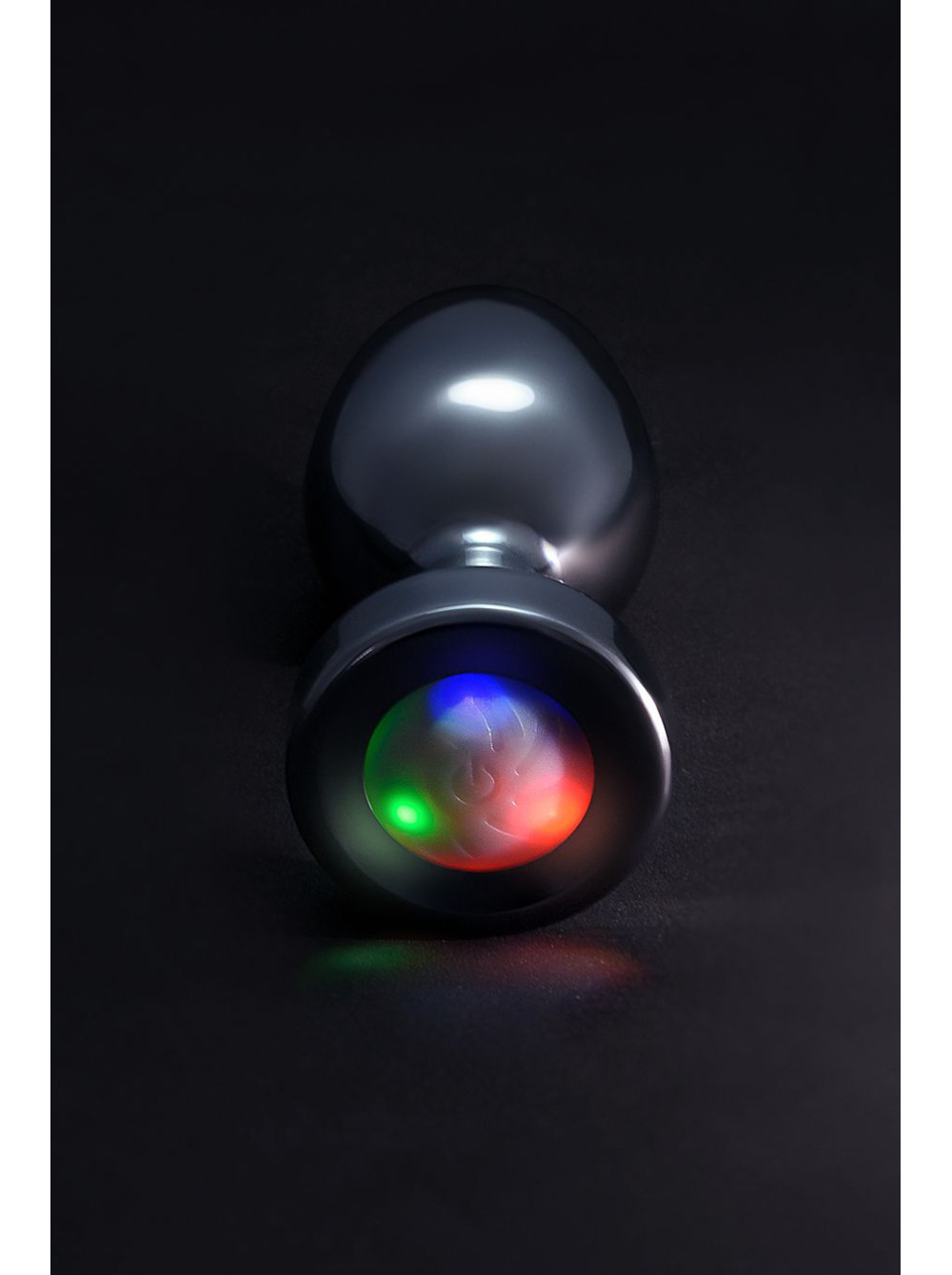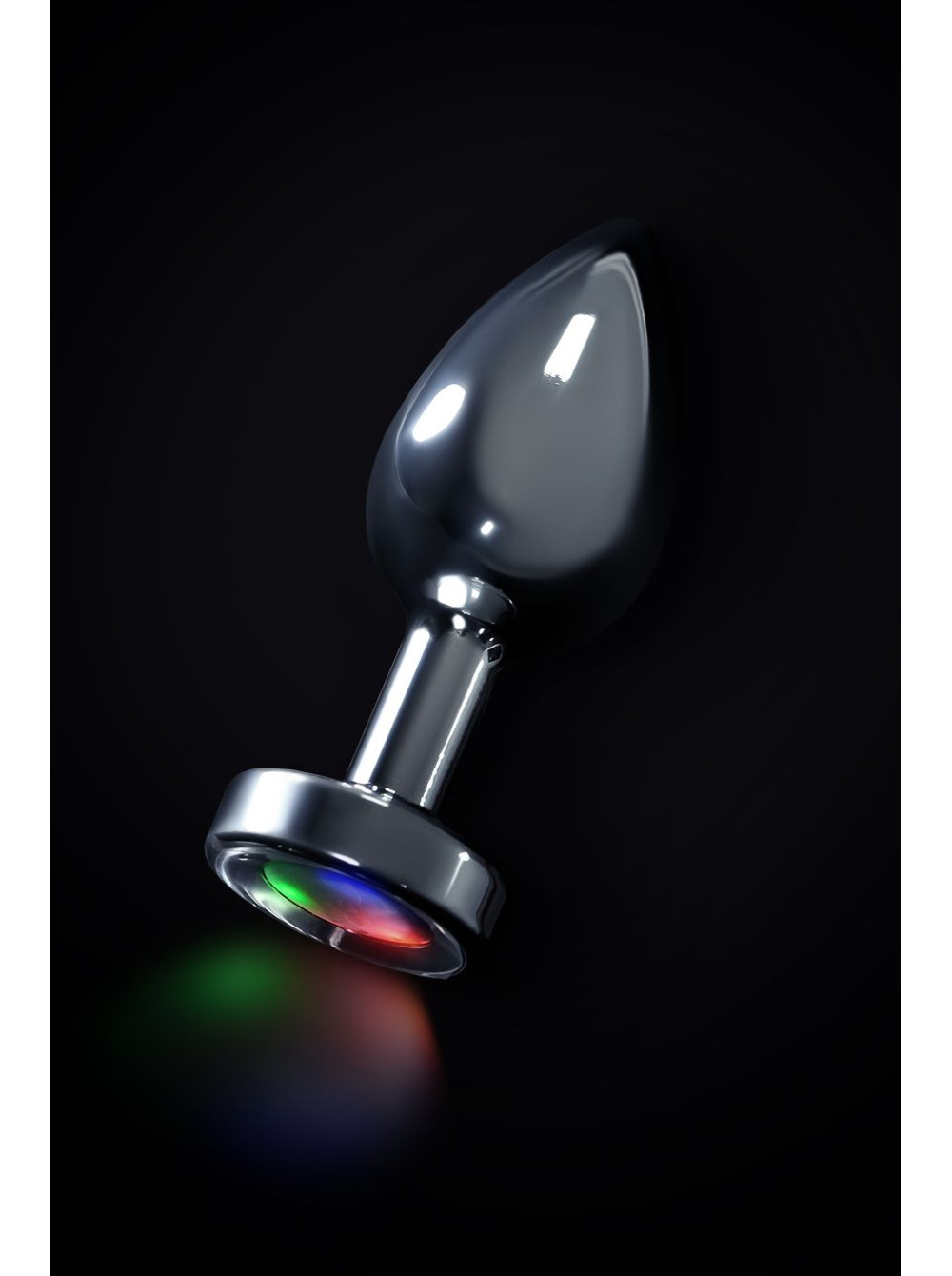 Анальная втулка Metal by TOYFA со светодиодами, металл, серебряная, 8,8 см, Ø 3,4 см, 105 г