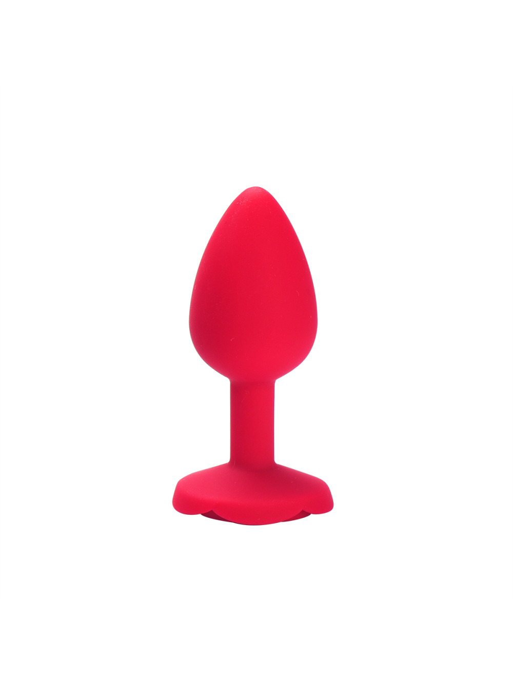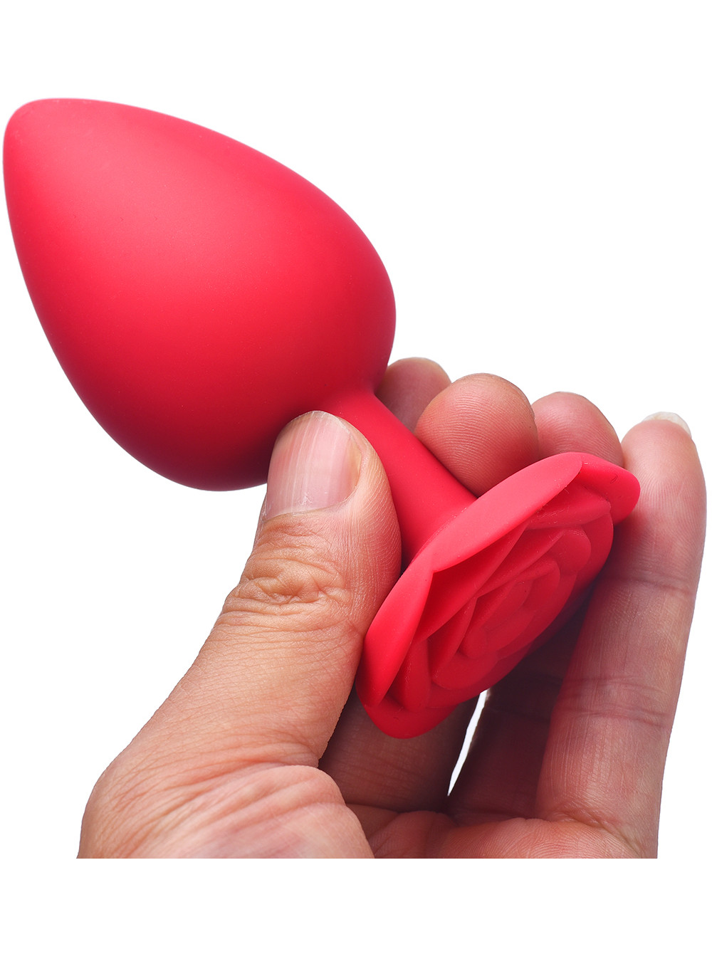 Красная силиконовая анальная пробка с ограничителем в форме розочки (Размер M)