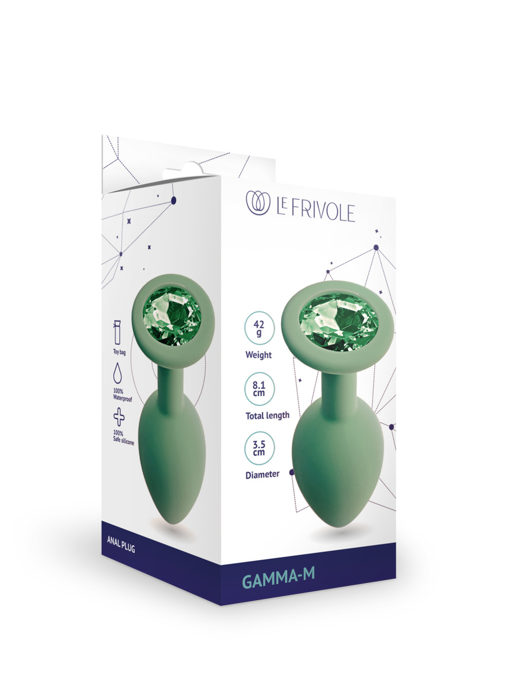 Анальная пробка с зеленым кристаллом Gamma, цвет салатовый (CORE)