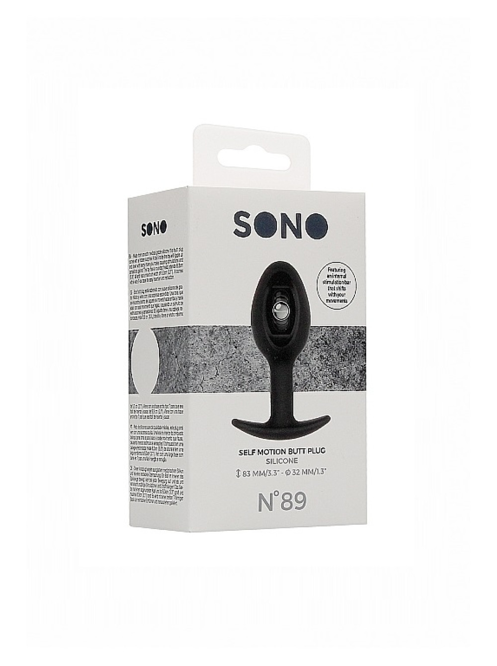 N0. 89 - Self Penetrating Butt Plug – анальная пробка со смещенным весом тяжести. Внутри пробки расположена трубка с тяжелым шариком, который перекатывается при движении, осуществляя дополнительную анальную стимуляцию. Идеально подходит не только для сужения влагалища, подготовки к анальному сексу, но и стимуляции, получения удовольствия и более яркой ощущений как во время секса в паре, так и соло. Анальная пробка имеет эргономичную форму. Пригодна для ношения.