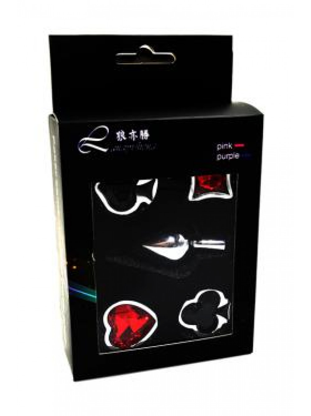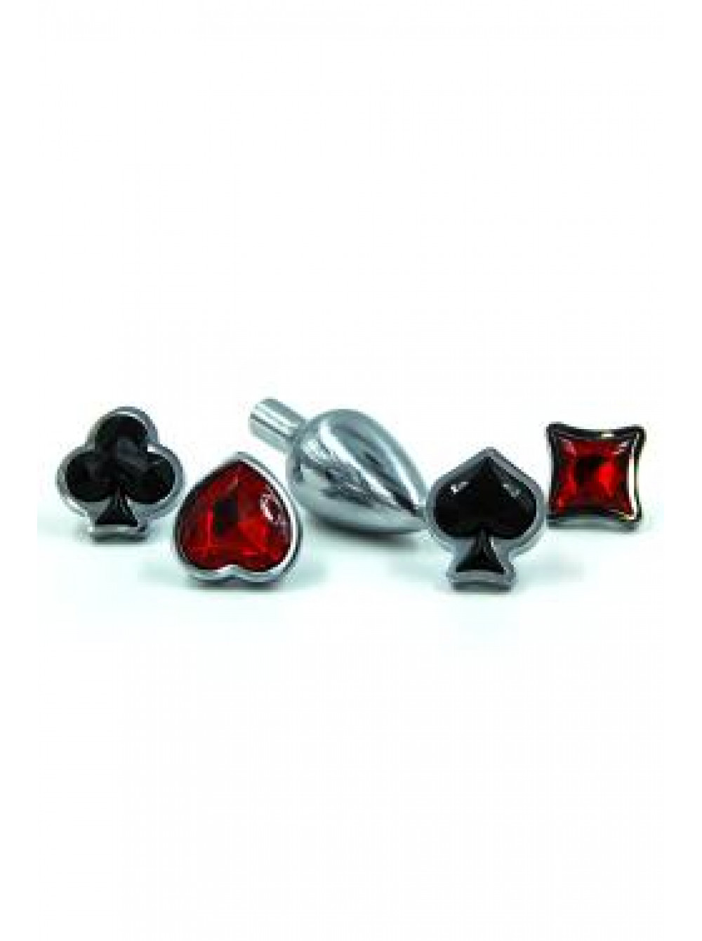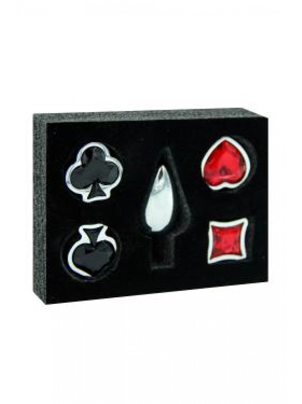 Набор из серебряной анальной пробки и четырех кристаллов в форме мастей (Small)
