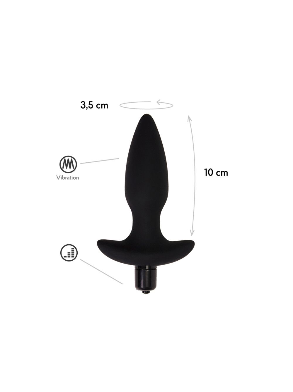 Позволь себе стонать от удовольствия c анальной пробкой Hati классического черного цвета! Эта вибрирующая анальная пробка идеально подходит для анальной стимуляции и массажа простаты как для начинающих, так и для экспертов. Нежный силиконовый материал, 10 режимов вибрации делают эту игрушку идеальным дополнением к вашей коллекции! Гладкая и коническая для легкого входа. В комплекте батарейки и фирменный мешочек для безопасного хранения.