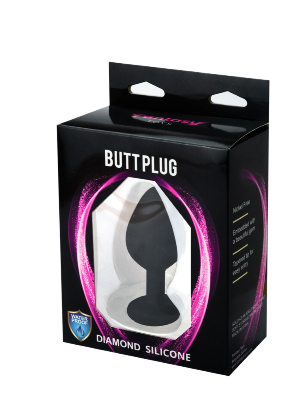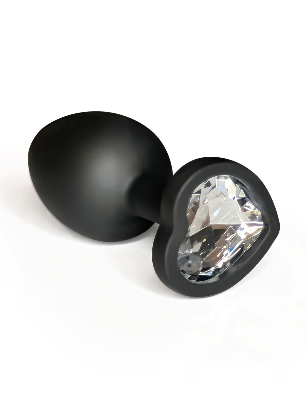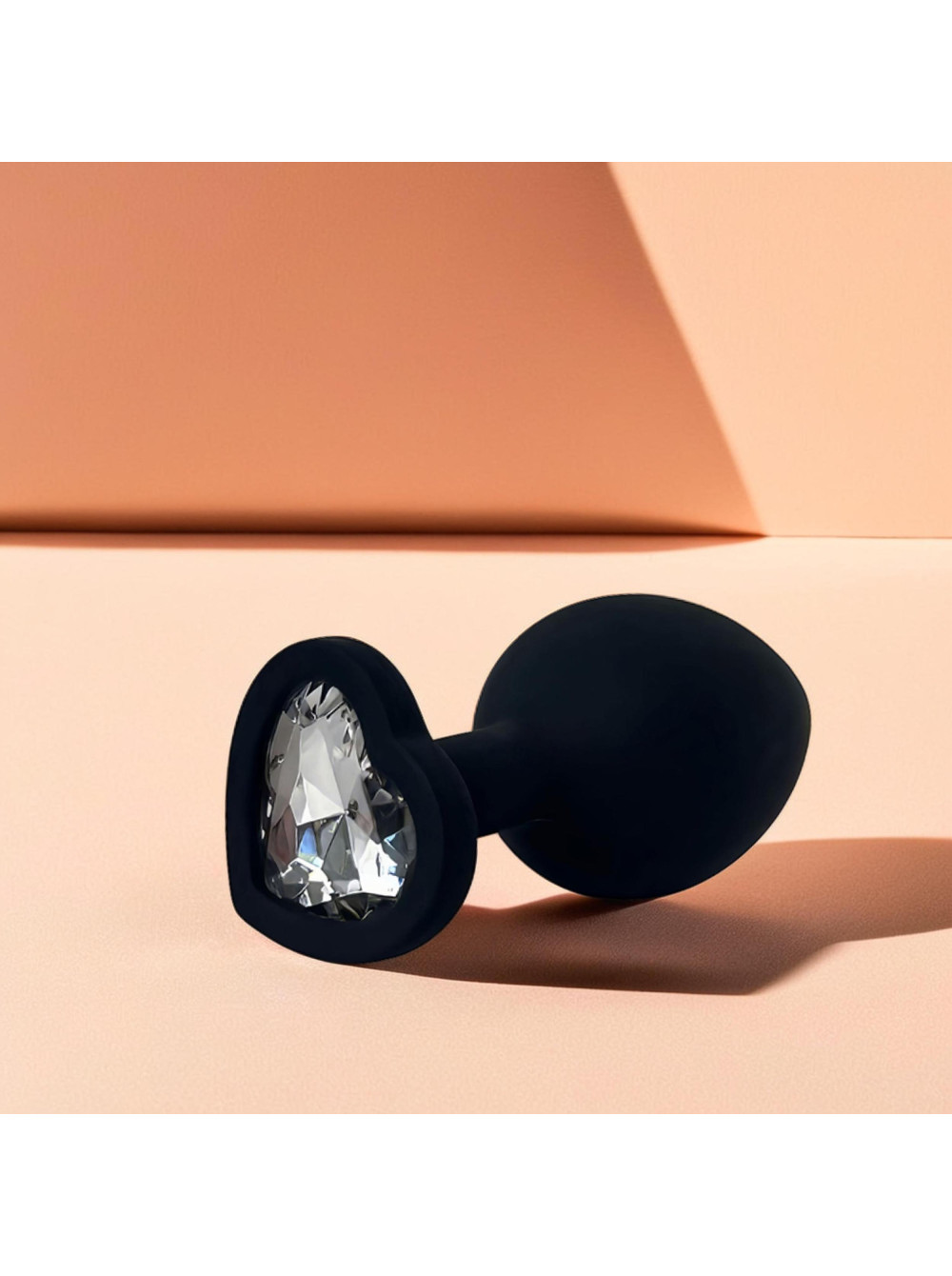 Анальная пробка силиконовая черная с белым кристаллом в виде сердца Fantasy Toys