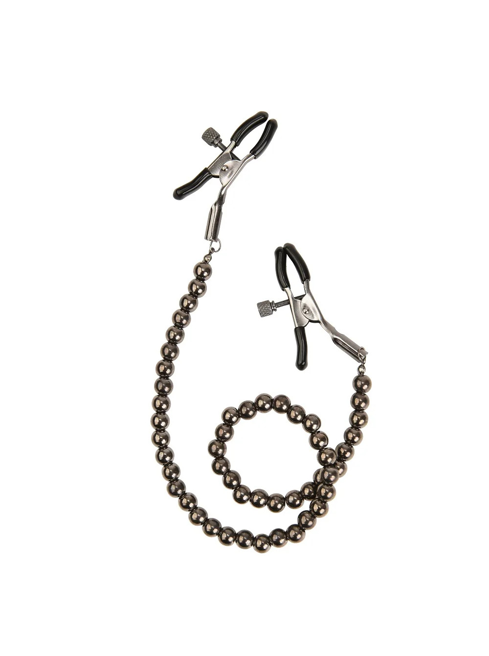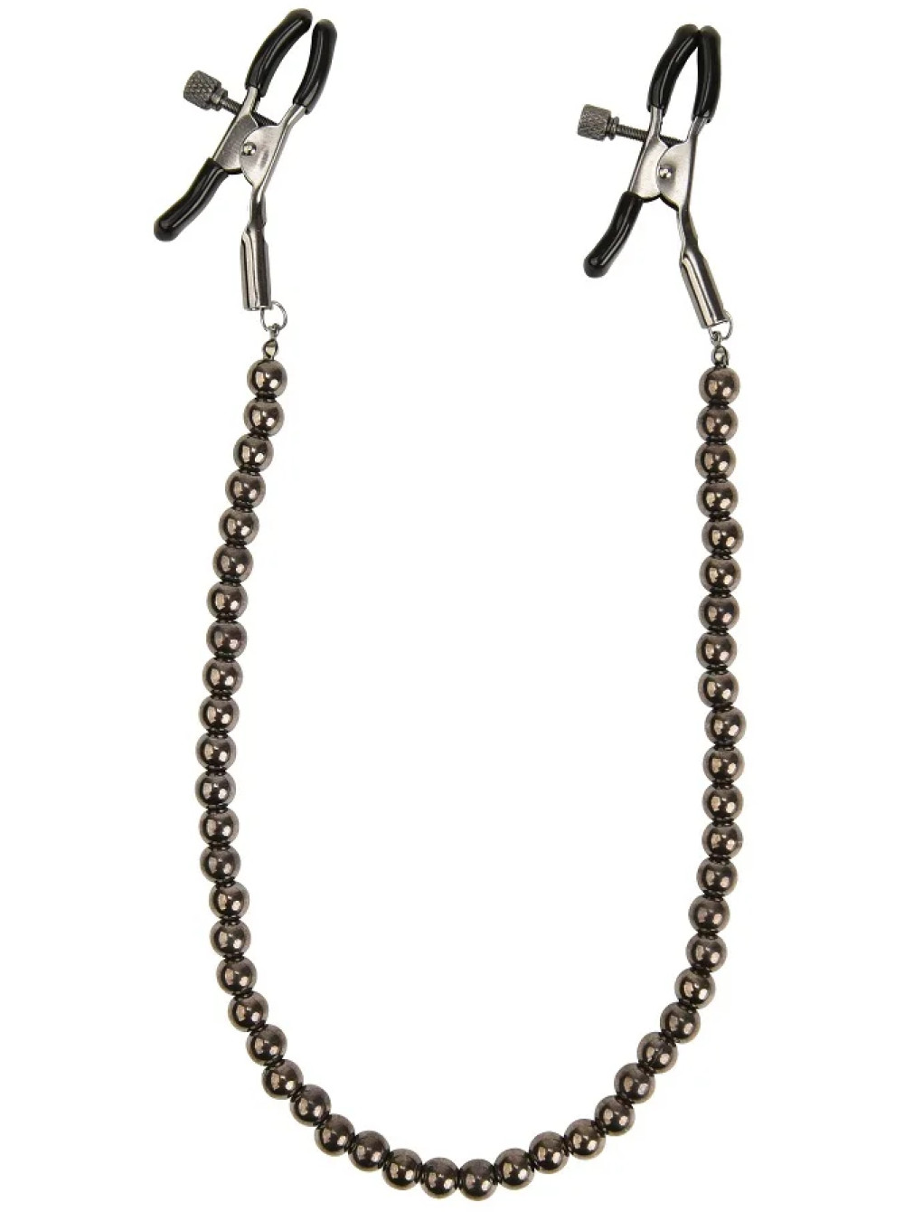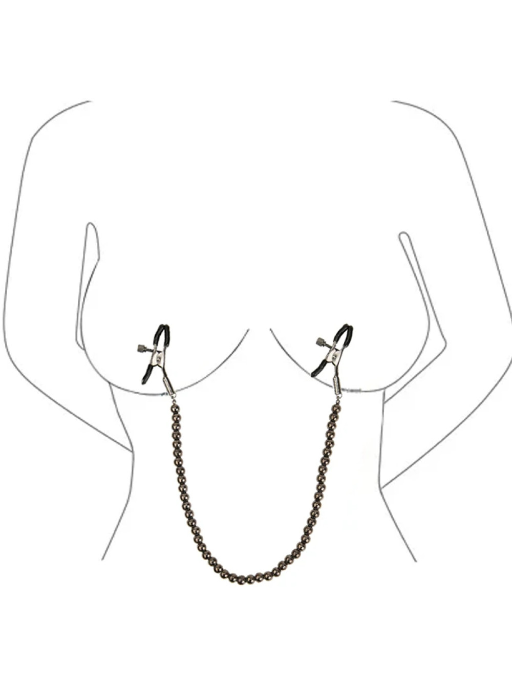 ажимы на соски с цепочкой из бусин служат дополнительным стимулятором одной из самых чувствительных зон.Включают в себя 2 полностью регулируемых многофункциональных зажима. Имеют мягкие наконечники,между собой зажимы соединены цепью из бусин, которая одновременно служит своебразным утяжелителем для дополнительных ощущений.