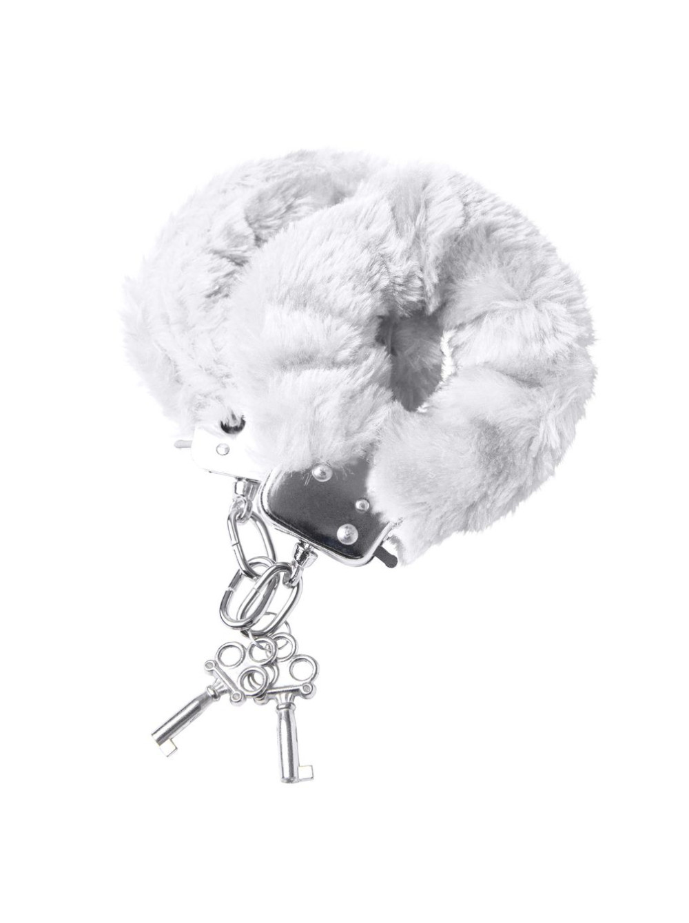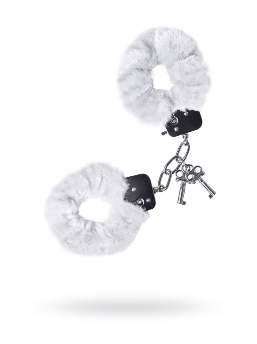 Наручники с металлическим основанием, декорированные белым искусственным мехом. С 2 ключами в комплекте. Регулируемый механизм позволяет сковывать как женские, так и мужские руки. На случай утери ключей или необходимости быстрого освобождения, предусмотрен рычажок быстрого открытия.