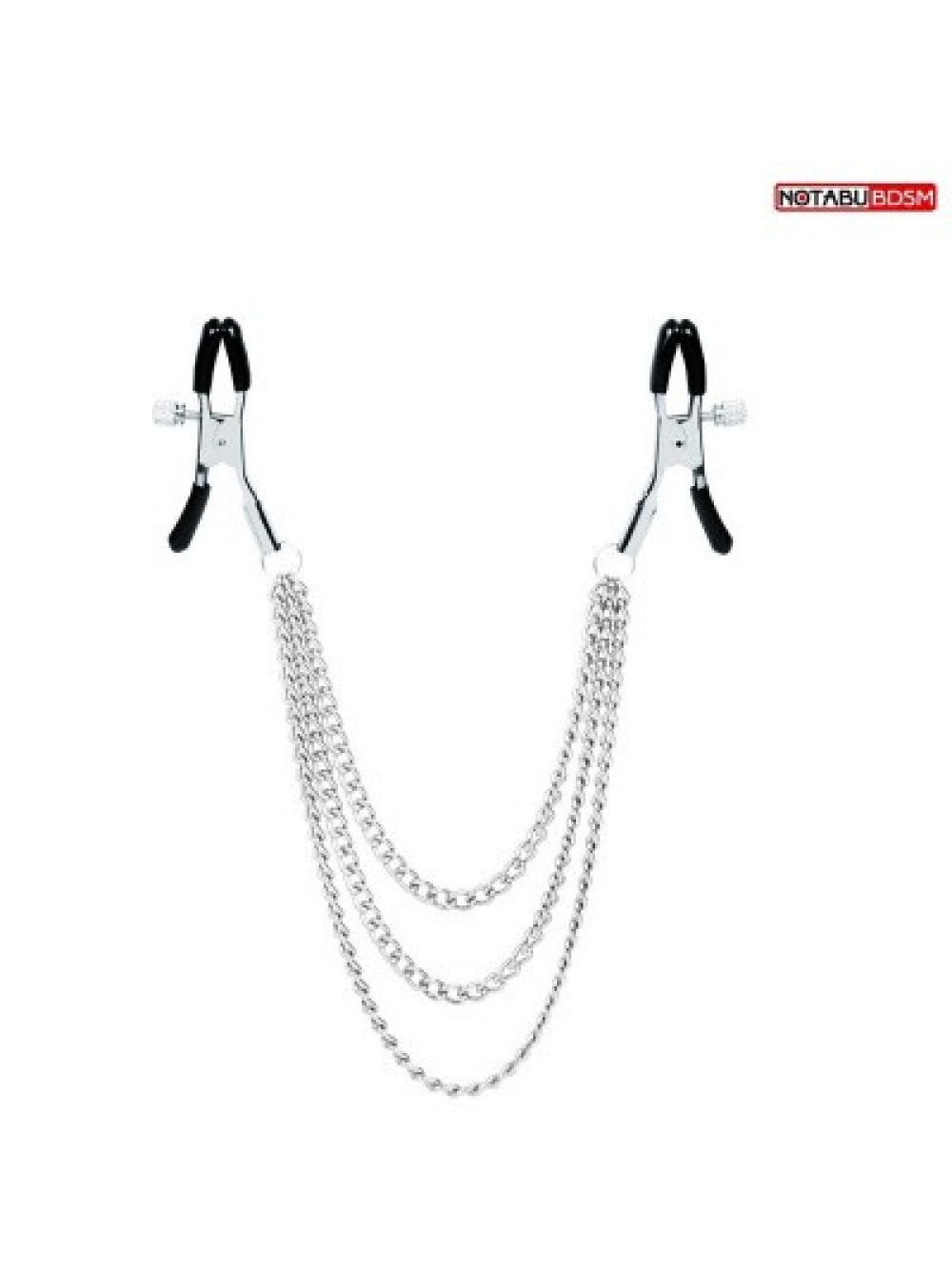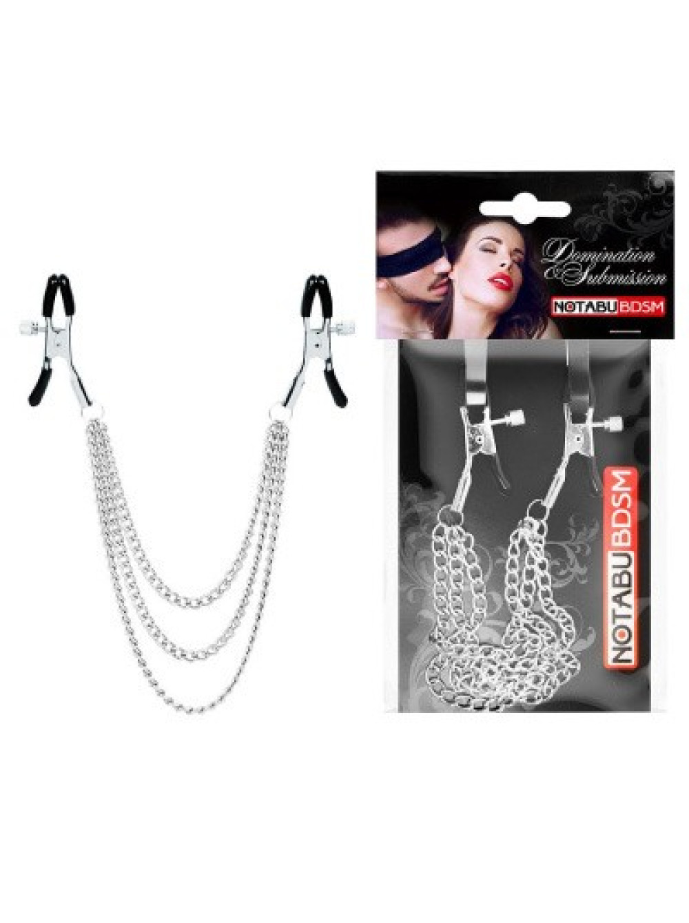 Зажимы соединены тремя лёгкими металлическими цепочками, дающими эффект утяжеления.