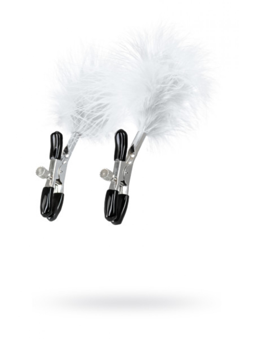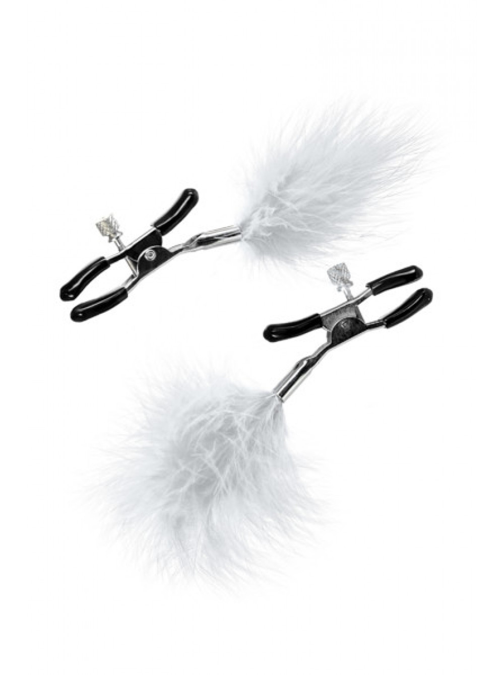 Пожалуй, самые милые из всех зажимов - украшенные перьями. Они стимулируют не только сжатием сосков, но и щекочут грудь. Сдавливание регулируется болтиком и может быть усилено или уменьшено во время интимной игры. Покрытие на концах зажимов защищает нежную кожу.