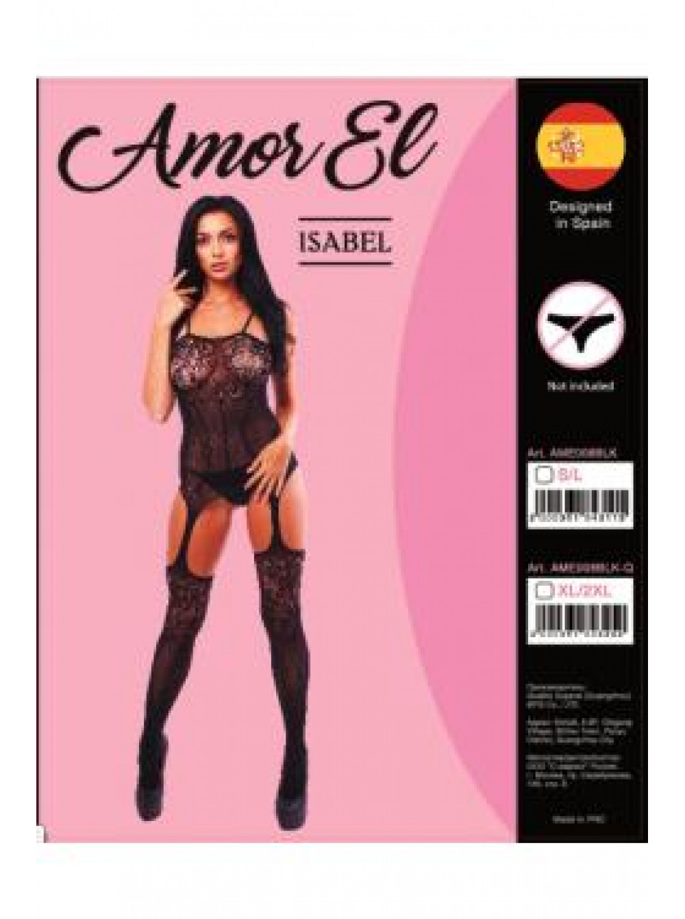 Isabel - боди-комбинезон с имитацией чулок. Дизайн в виде сетки дополнен кружевным рисунком.