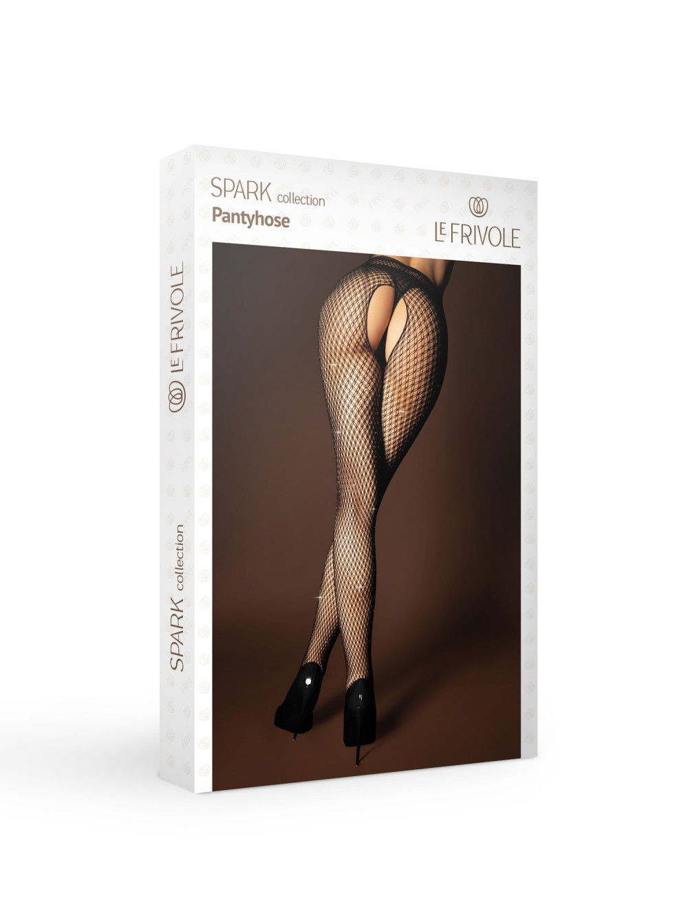 Искрящиеся стразами черные колготки со сдвоенной мелкой сеткой и доступом (SPARK)