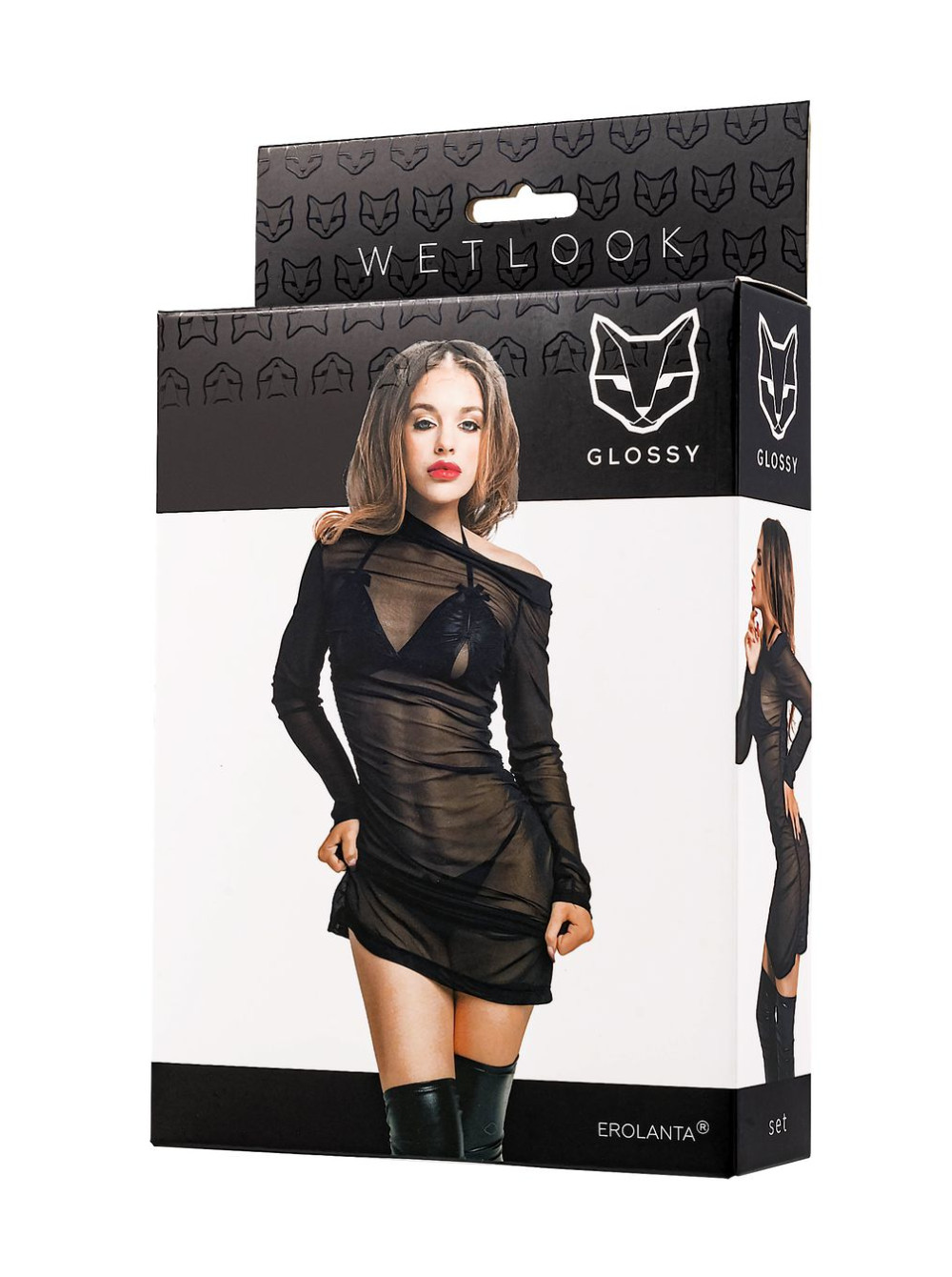 Комплект Glossy Sheril платье сетка, лиф и трусики из материала Wetlook, черный, S, L, XL