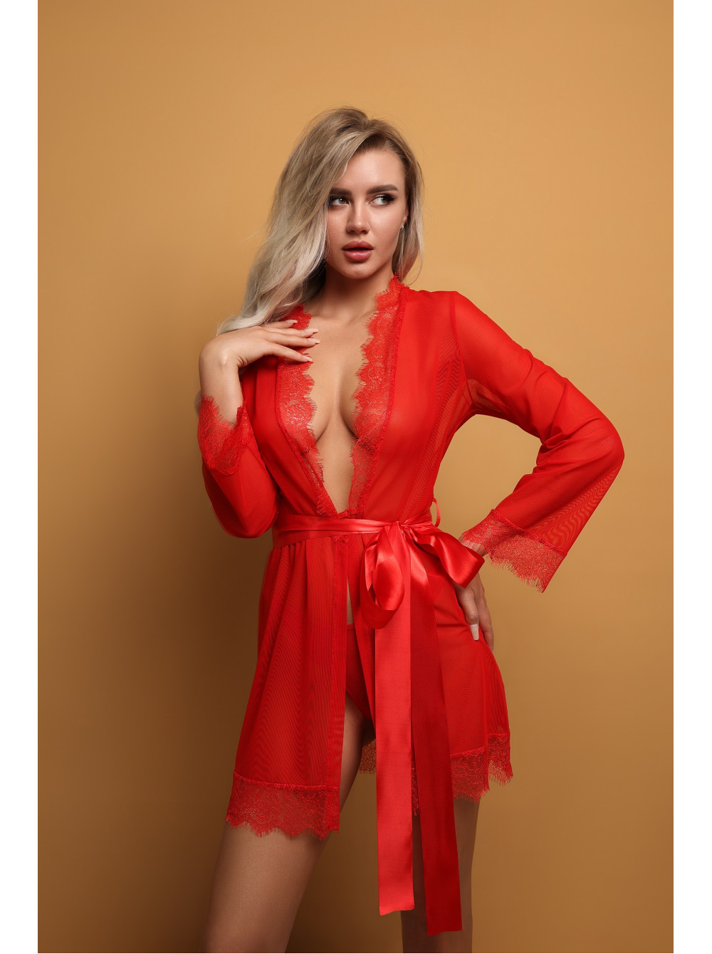 Этот пеньюар создан для тех, кто желает выглядеть элегантно и изысканно. Этот наряд сделан из прозрачной сетки, что позволяет обнажить красивое женское тело, но в то же время не показывая его полностью. При этом, потрясающее тонкое французское кружево с ресничками, отделка края и низа, придают пеньюару особый шарм и изысканность.