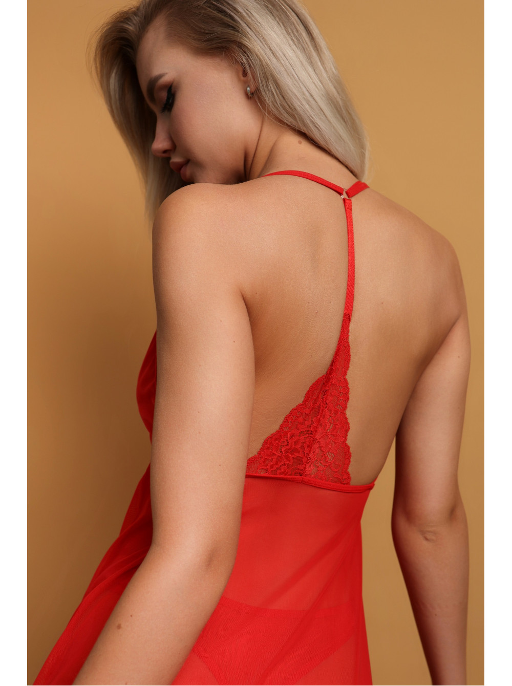 Открытая спинка этой сорочки изящно обнажает область лопаток, а кружевная аппликация добавляет к этому изображению еще больше интриги и загадочности.