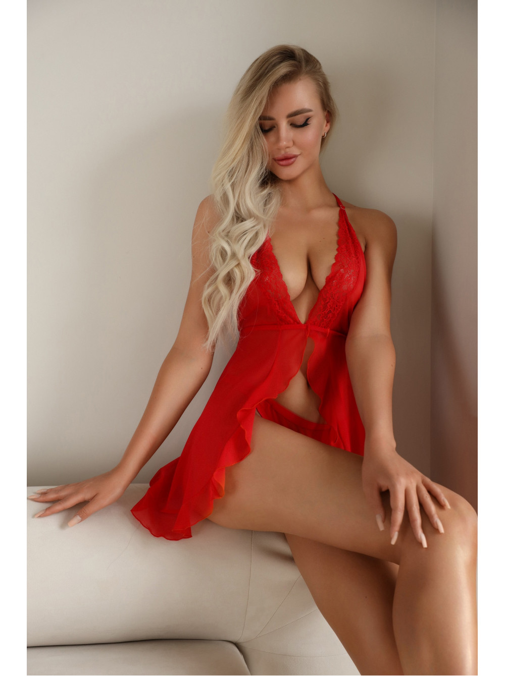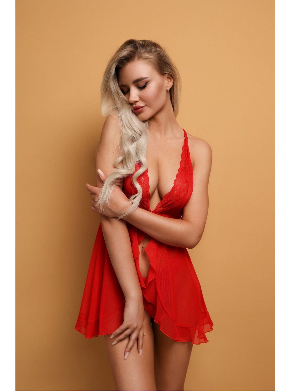 Эта беби долл на запахе - настоящее искушение для глаз. Основной материал - прозрачная сетка - дает возможность загадочно просматривать тело, при этом не оставляя многое для воображения. Изящные рюши на нижней кромке, кружево на лифе добавляют изысканности, что создает ощущение роскоши.