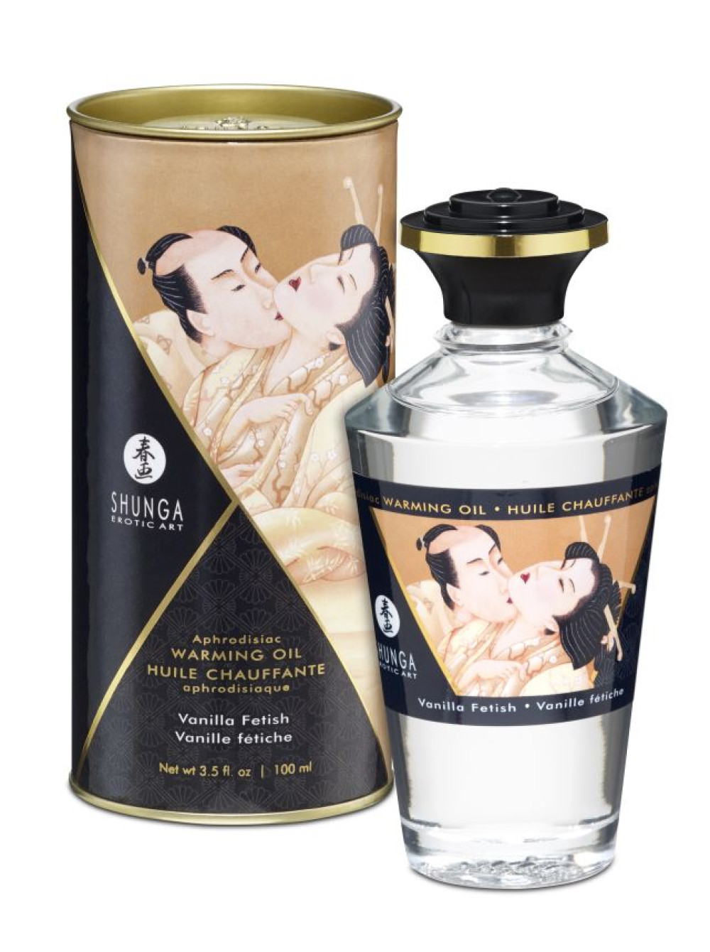 Разогревающее и съедобное масло для тела с натуральными вкусом Ванильный фетиш Shunga Afrodisiac Warming Oil.