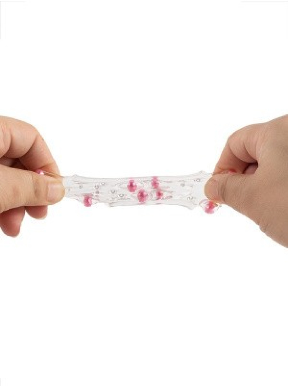 Интимный аксессуар изготовлен из эластичного материала. Хорошо мнётся и тянется. Подходит для пенисов разных размеров. Прост в применении и уходе.