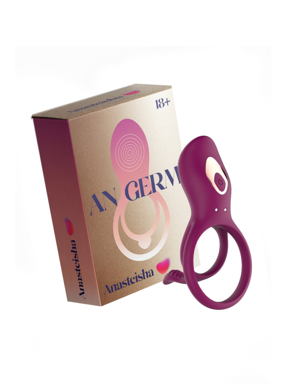 AN Germ - двойное эрекционное кольцо, предназначенное для поддержания эрекции и стимуляции. Игрушка имеет 12 режимов глубокой вибрации и идеально подойдёт для дополнительной стимуляции клитора и яичек, а также усилит эрекцию и замедлит процес эякуляции.