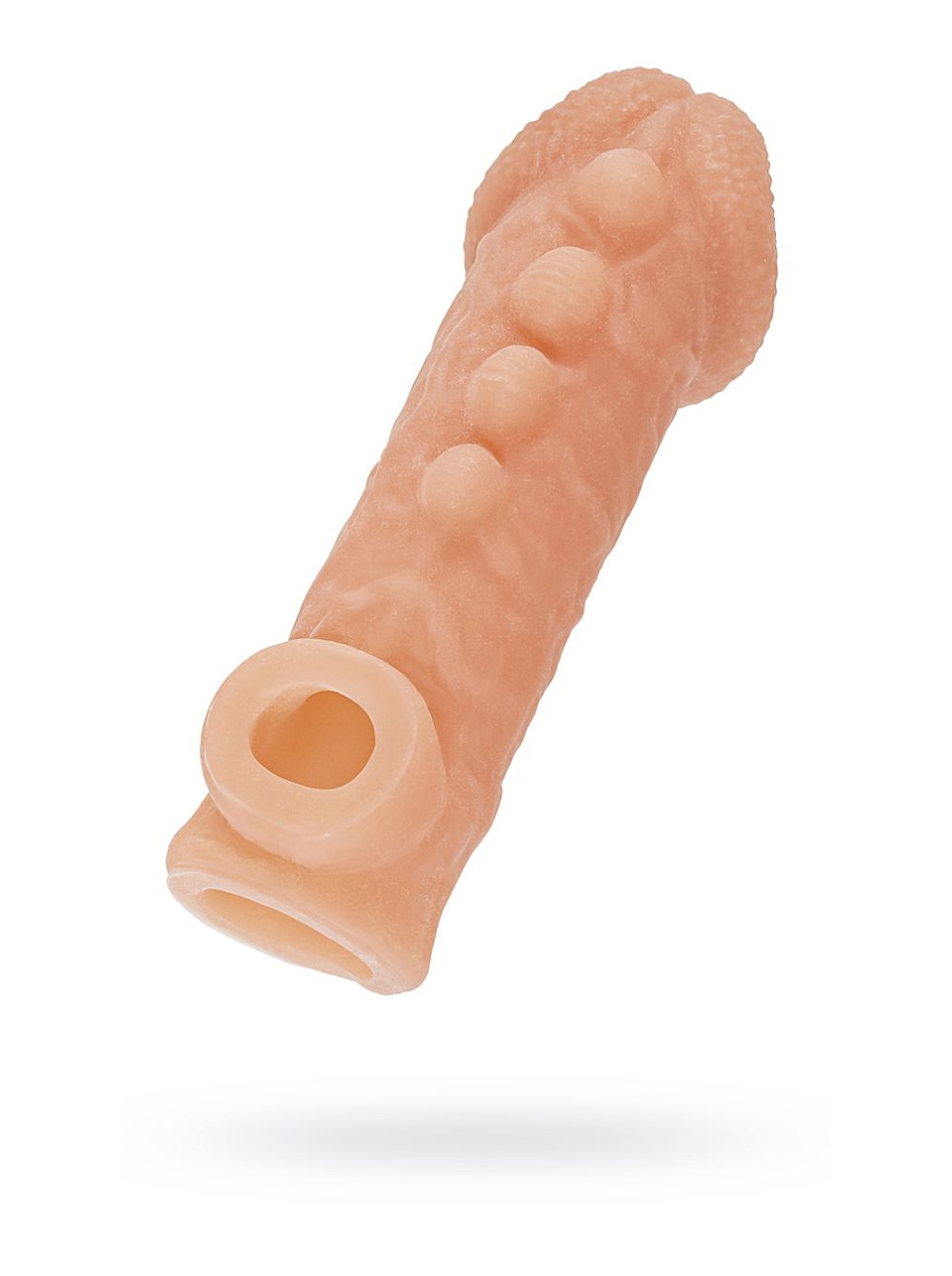 Реалистичная насадка на пенис - необходимый элемент для вашей сексуальной игры, если вы хотите максимально удовлетворить свою партнершу и сделать ваш секс незабываемым. Насадка придает дополнительный объем и длину половому члену. Мощная головка имеет рельеф из мелких пузырьков и крупный выступ. Выступающие бугорки сверху и снизу очень хорошо стимулируют зону G и вход во влагалище. Контрастный переход от головки к стволу, 3 выпуклости на передней и 4 на задней части насадки, благодаря изогнутой форме, увеличивают силу стимуляции зоны G и входа во влагалище.