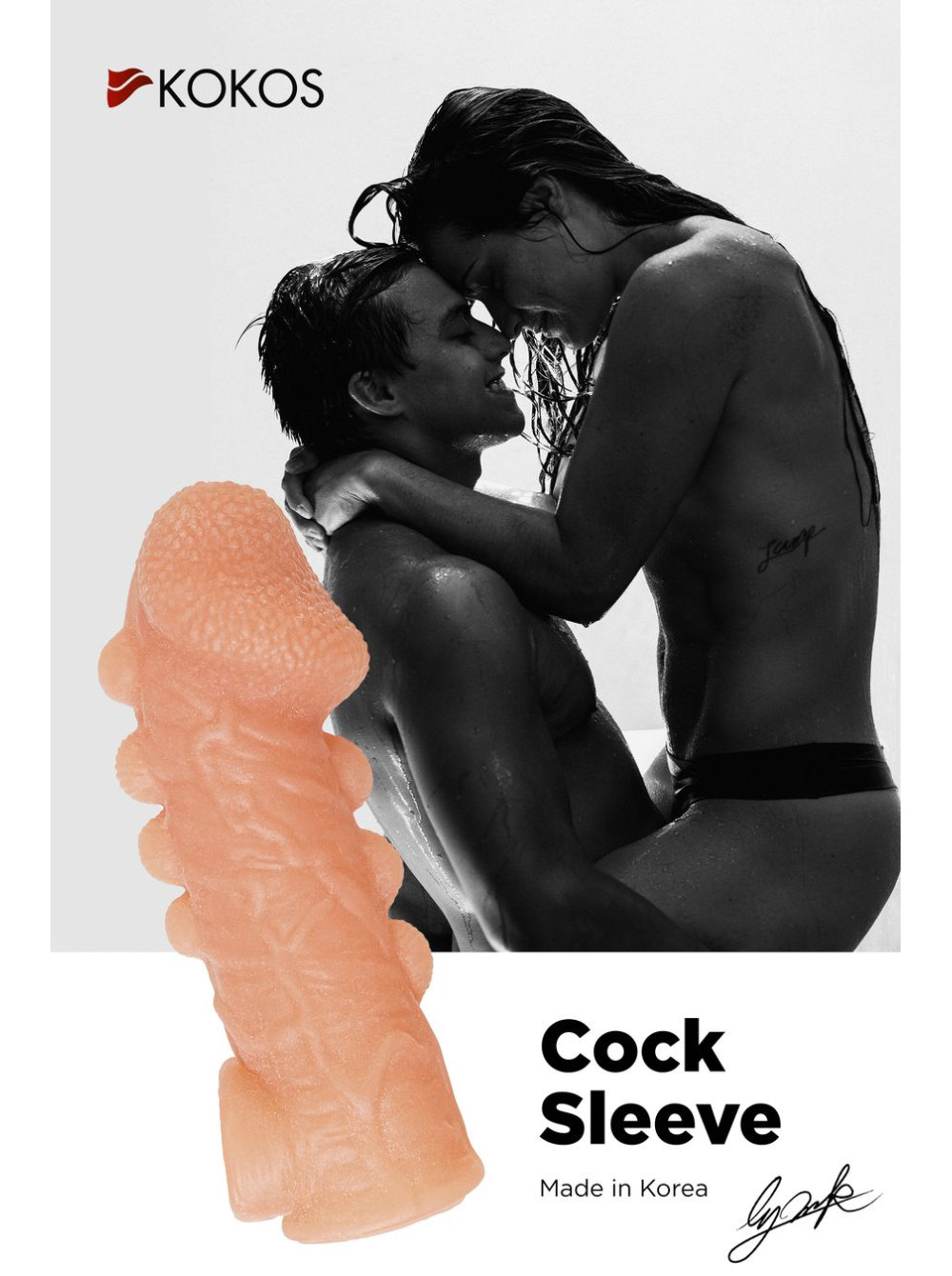 Насадка реалистичная KOKOS COCK SLEEVE 008-M с дополнительной стимуляцией, TPE, телесная, 15.6 см