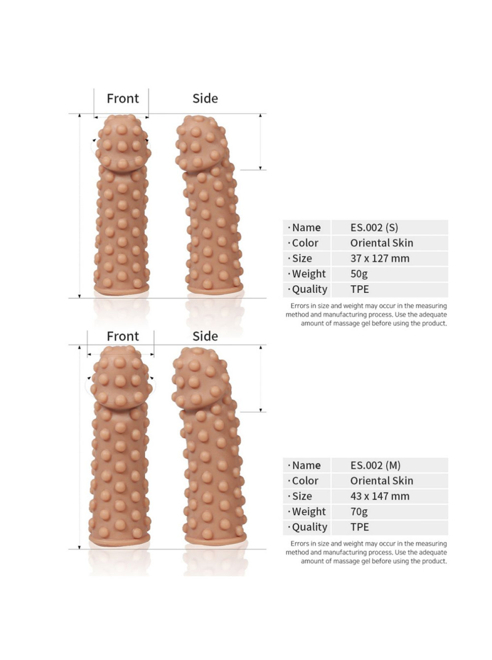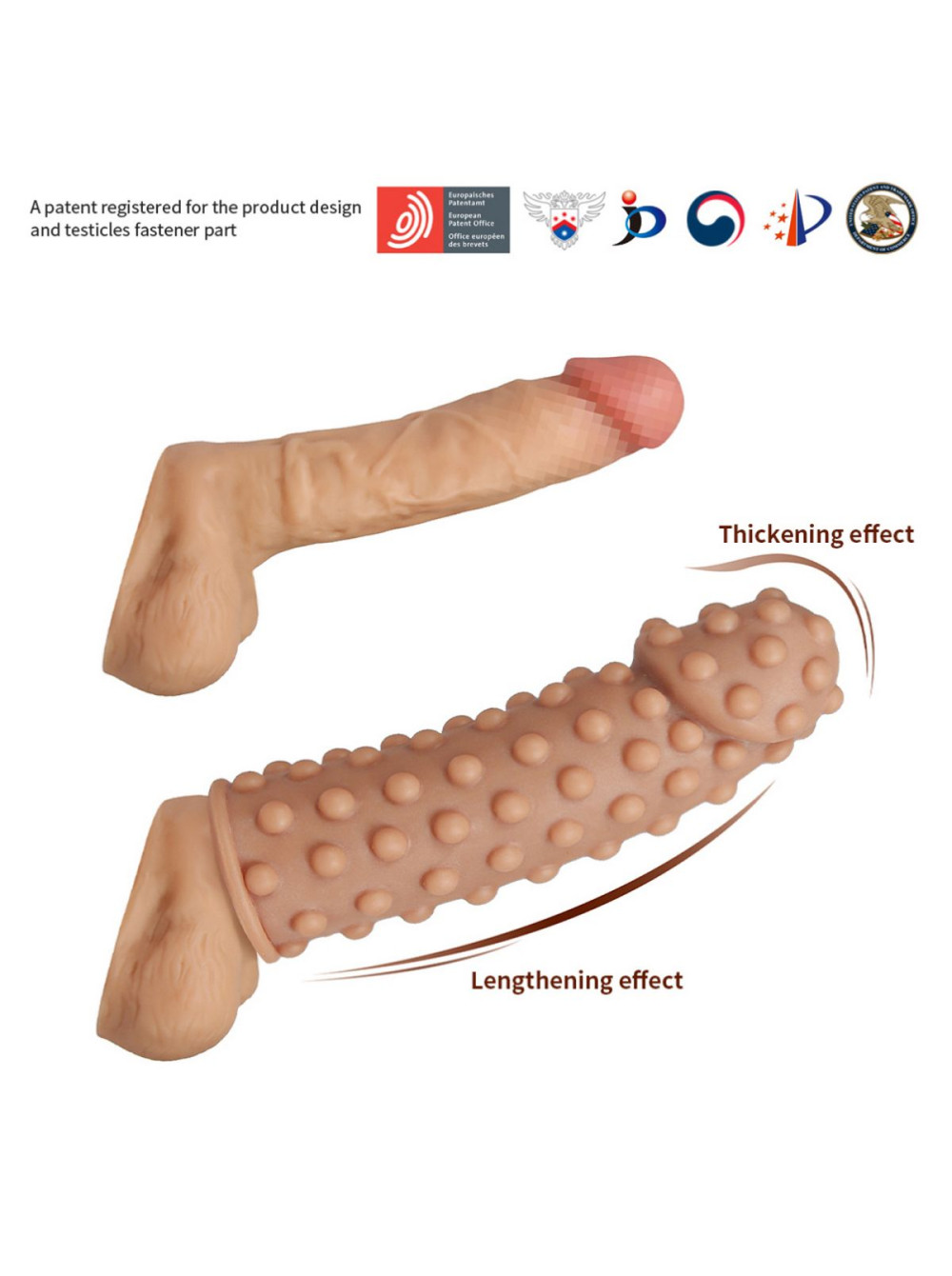 Насадка очень эластичная, имеет бугорки по всей поверхности, для стимуляции эрогенных зон партнера, увеличивает толщину головки и ствола пениса.