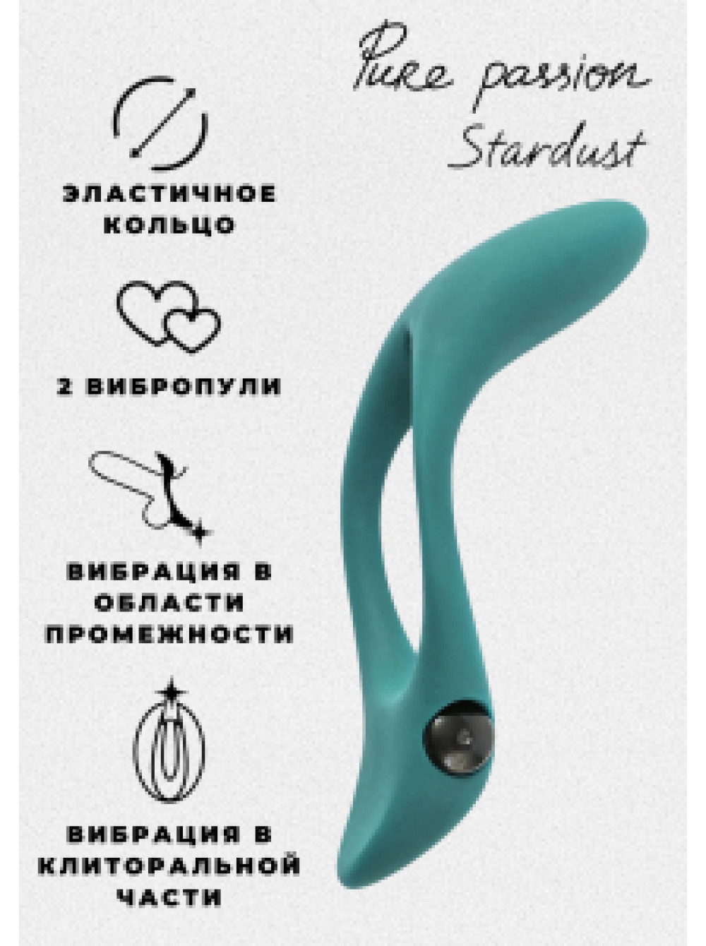 Эрекционное кольцо Stardust прекрасно подойдет для стимуляции промежности и клитора. Нижний отросток длиной 4,9 см со съемной вибропулей внутри позволит полностью покрыть промежность нежной и в то же время мощной вибрацией. А верхний загнутый отросток высотой 3,5 см вместе с вибропулей внутри будет дополнительно стимулировать клитор партнерши. Кольцо выполнено из бархатного и гипоаллергенного силикона. Кольцо хорошо тянется и подходит для всех размеров. Вибропули можно с легкостью извлечь из силиконового кольца и использовать отдельно. Питание вибропуль осуществляется с помощью 2-ух батареек LR41. Материал - силикон. Общая длина - 13 см. Внутр. высота кольца - 5,3 см. Внутр. ширина кольца - 3,5 см
