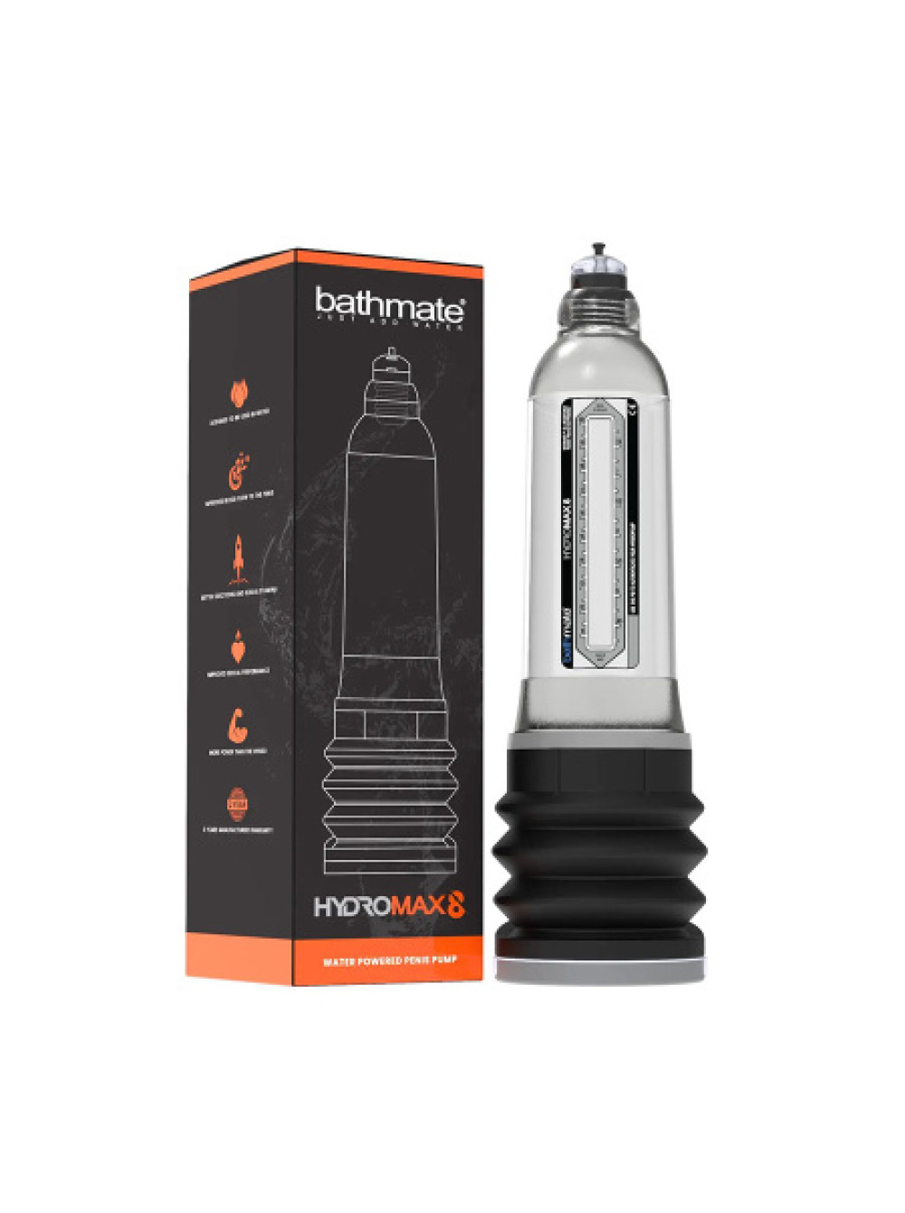Bathmate Hydromax8 это уникальная гидропомпа из серии Hydromax, которые на 35% эффективнее и на 15% больше Bathmate Hercules.