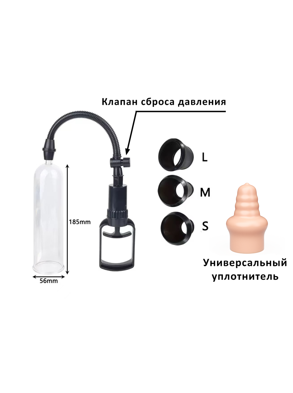 Вакуумный массажер (помпа) Длина общая 185 мм. Диаметр 56 мм.