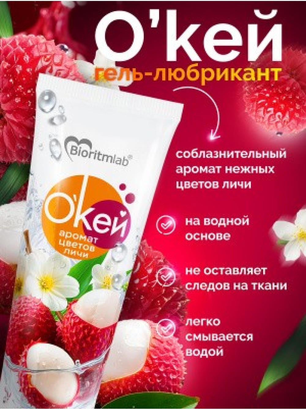Гель-любрикант на водной основе с лёгкой нежной консистенцией и приятным ароматом цветов личи. Во время секса обеспечит максимально мягкое проникновение, интенсивное увлажнение и продолжительное скольжение. О'КЕЙ АРОМАТ личи подарит комфорт и безопасность во время интимной близости. Не оставляет следов на ткани, легко смывается водой.