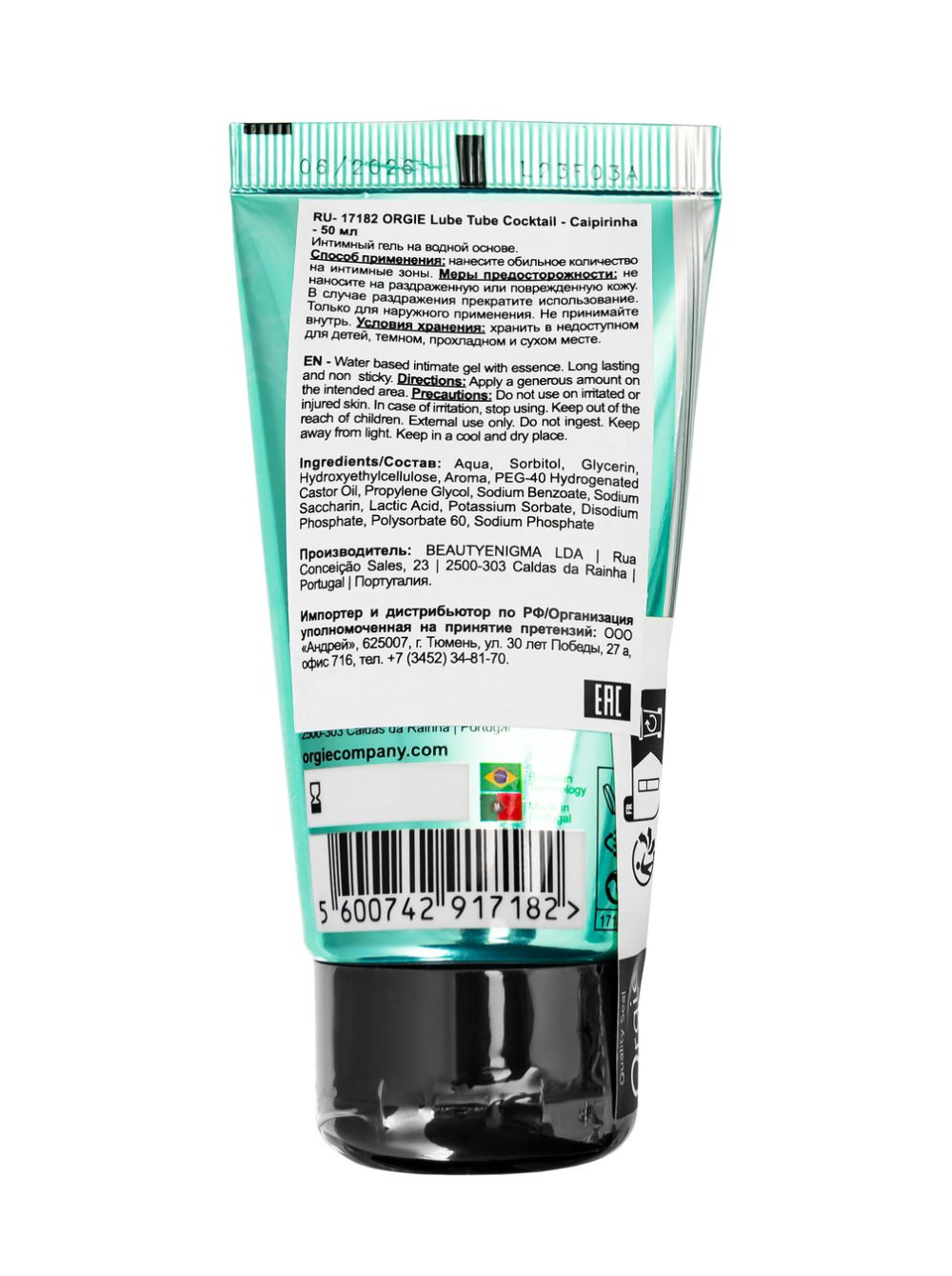 Интимный гель Orgie LUBE TUBE COCKTAIL на водной основе, со вкусом кайпириньи, 50 мл