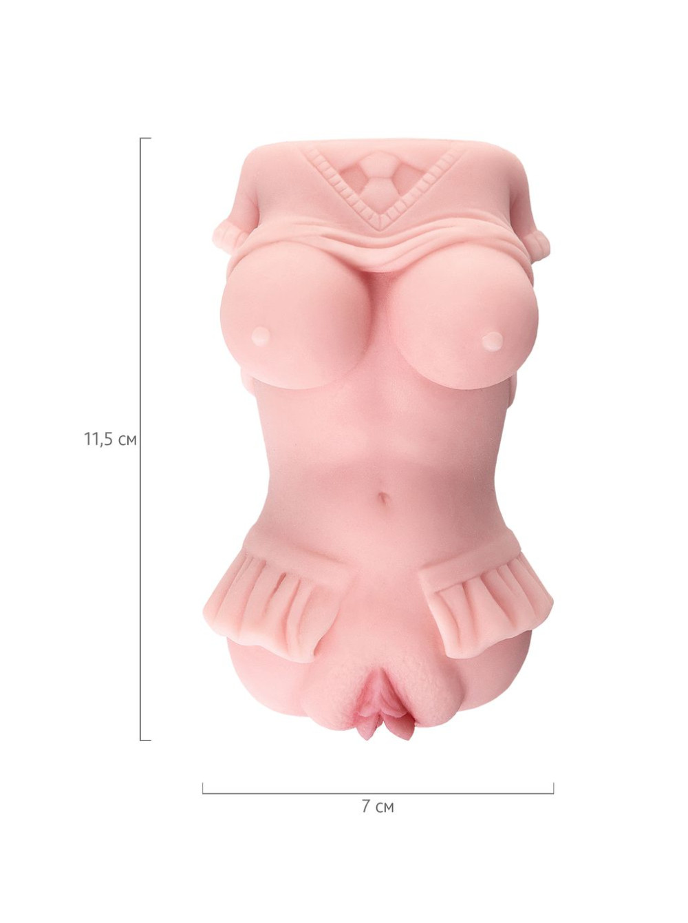 Мастурбатор удобно ложится и удерживается в руке, благодаря повторениям изгибов молодого женского тела. Сочные формы - грудь, талия и половые губы призывно томятся в ожидании твоего внимания. Малые половые губы выделяются на фоне игрушки насыщенным розовым цветом, это непременно порадует твой взгляд и поможет обогатить фантазию новыми желаниями.