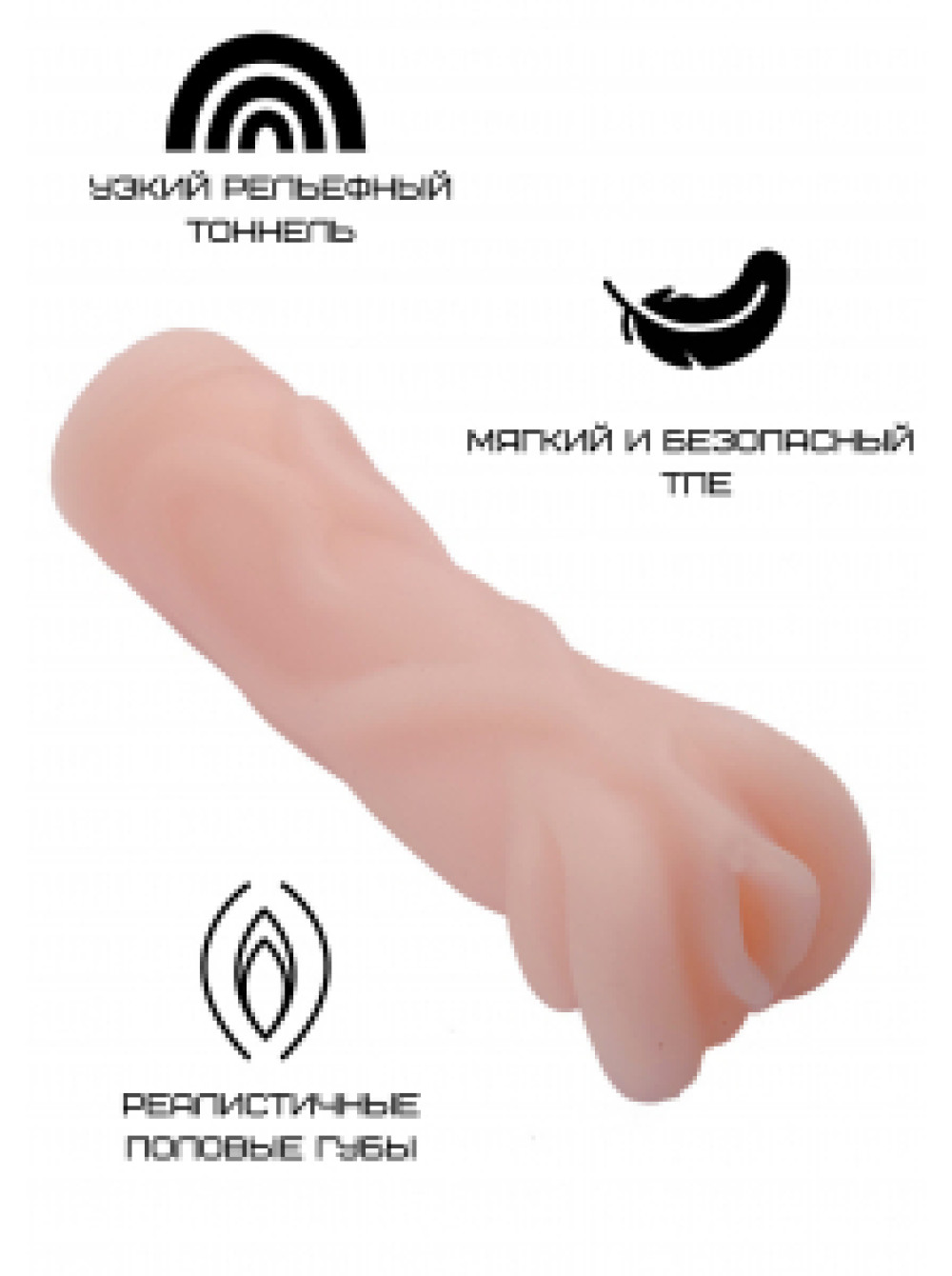 Реалистичный мастурбатор-вагина выполнен из мягкого пористого ТПЕ и максимально точно передает ощущение прикосновения к коже, а также эмоции как от полноценного сексуального акта. ТПЕ безопасен для кожи и не содержит фталаты. Подойдет для любого размера. Перед применением рекомендуется добавить лубрикант. Узкий рельефный тоннель мастурбатора имеет ребристую текстуру. Общая длина составляет 13,2 см, ширина – 4,6 см. Изделие упаковано в прозрачный пакет, для сокращения расходов и снижения стоимости. На этикетке размещена вся необходимая информация и описание.