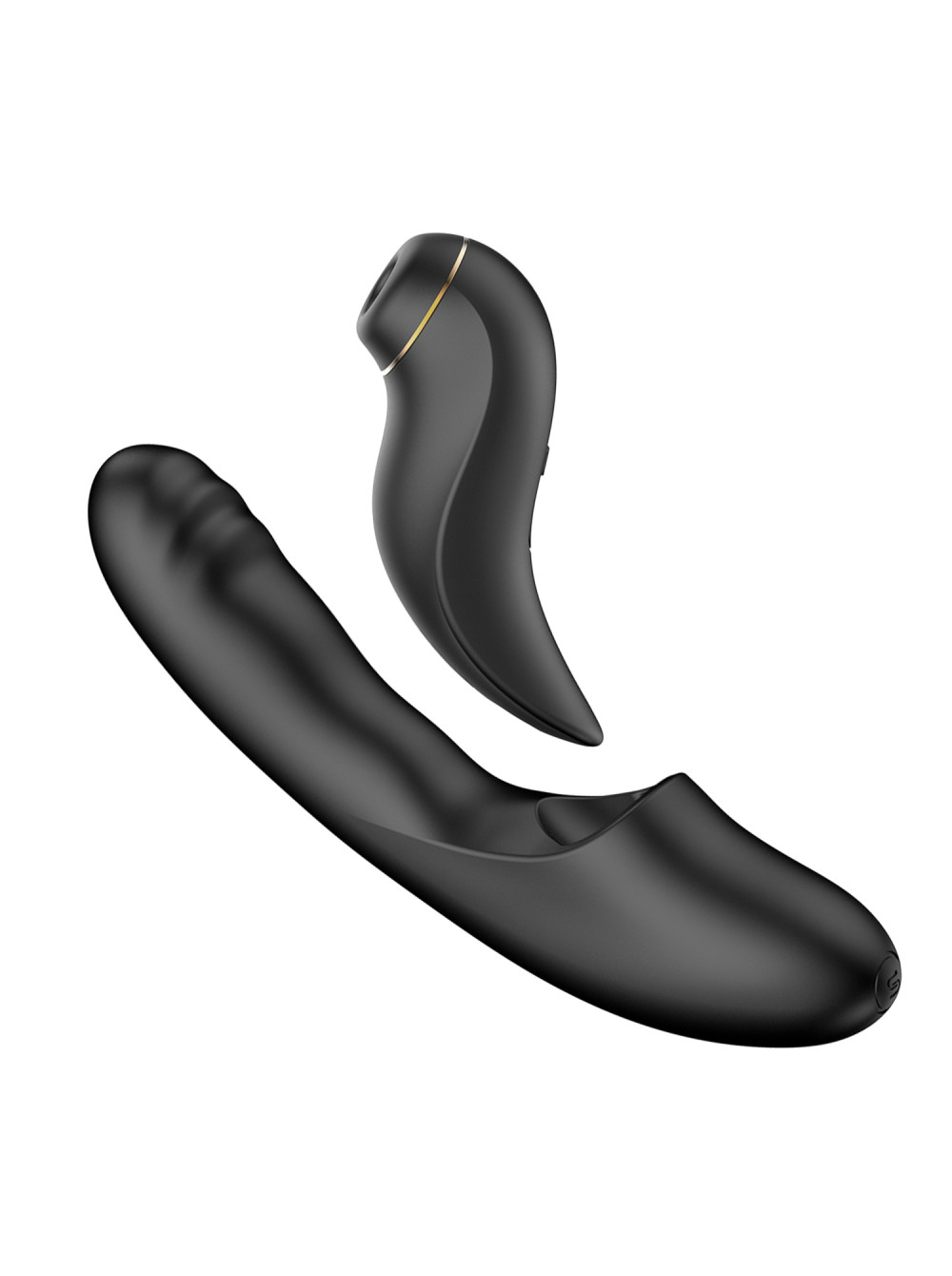 Вибратор с возвратно-поступательными движениями, вакуумом и приложением BeYourLover Fatima, черный