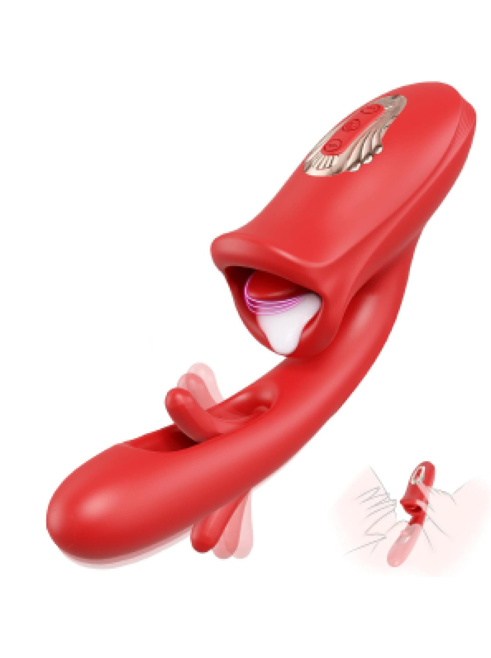 Вибратор выполнен из бархатистого силикона с декоративным пластиковым элементом. Вагинальная часть имеет 10 режимов вибрации, включается средней кнопкой коротким нажатием. Фингеринг осуществляется благодаря встроенному в вагинальную часть лепестка, также имеет 10 режимов и включается верхней кнопкой на панели управления. Клиторальная часть тоже имеет 10 режимов лизания, включается нижней кнопкой. Все три функции могут работать как по отдельности, так и одновременно, адаптируясь под желания пользователя. Общая длина: 14,5 см. Длина вагинальной части: 9,6 см. Диаметр вагинальной части: 3,5 см. Вибратор изготовлен из силикона, водонепроницаем и перезаряжается от магнитной зарядки. Время зарядки — 120 минут, время работы — до 60 минут.