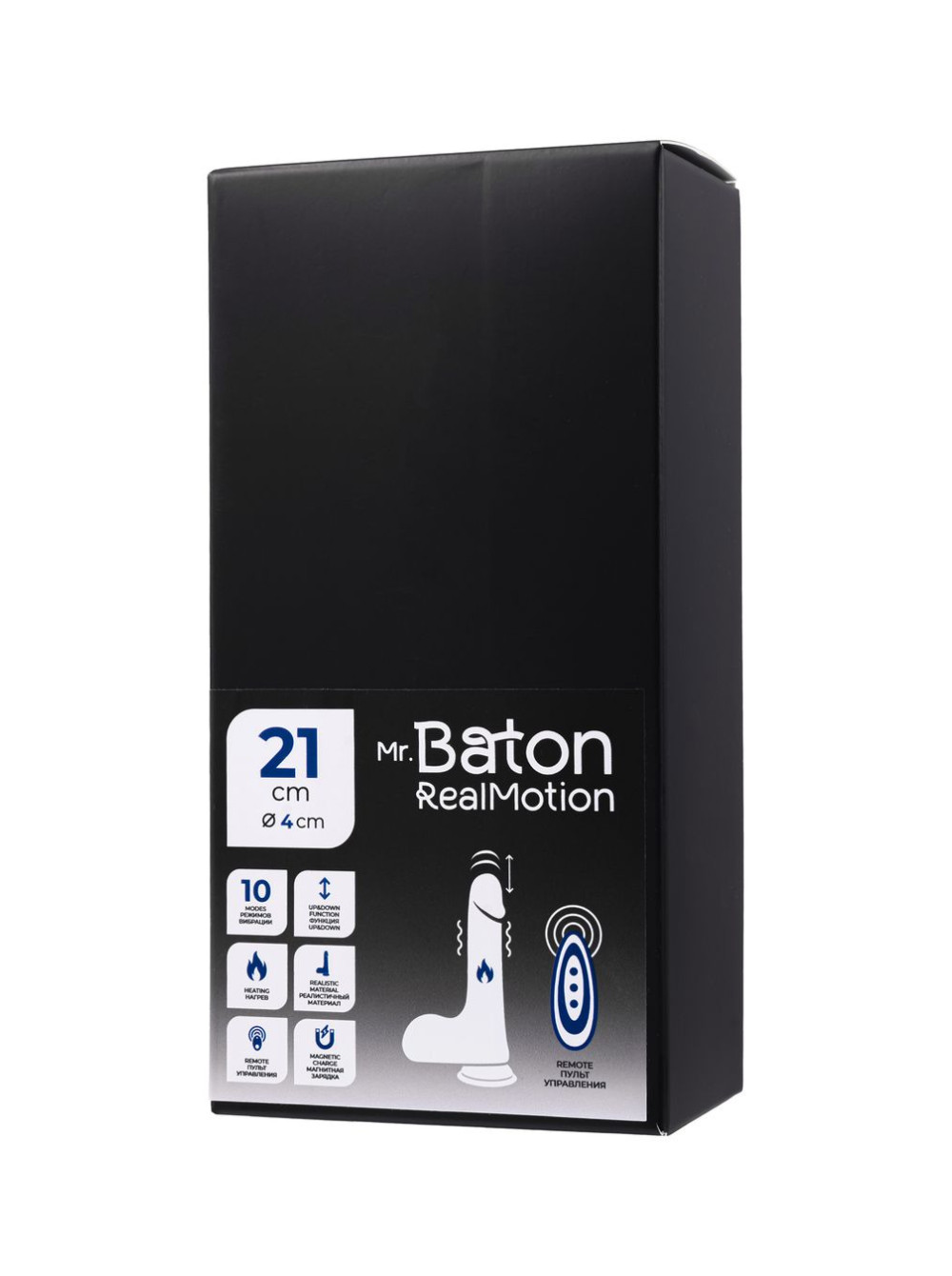 Mr. Baton RealMotion — коллекция фаллоимитаторов с передовыми функциями для настоящего наслаждения. Встроенные вибрация, подогрев и функция up-down обеспечивают удивительные ощущения, которыми к тому же можно управлять при помощи пульта. Натуральный силикон дарит невероятную мягкость, а мощная присоска позволяет использовать игрушку в любых позициях. Особенности: 10 режимов вибрации, функция движения UP&DOWN, подогрев, пульт ДУ, магнитная зарядка.