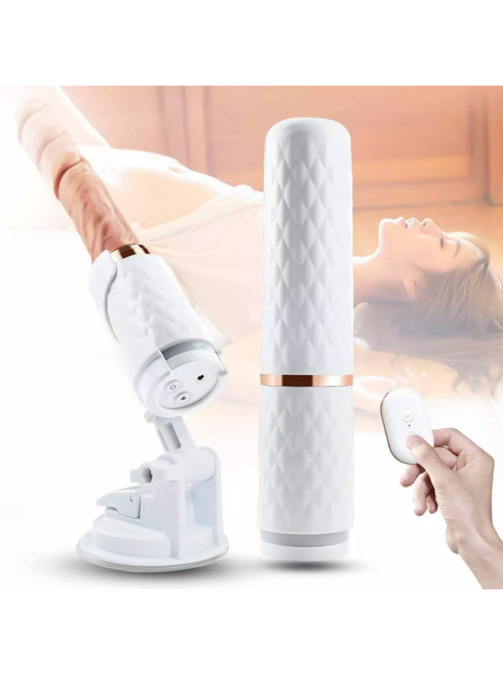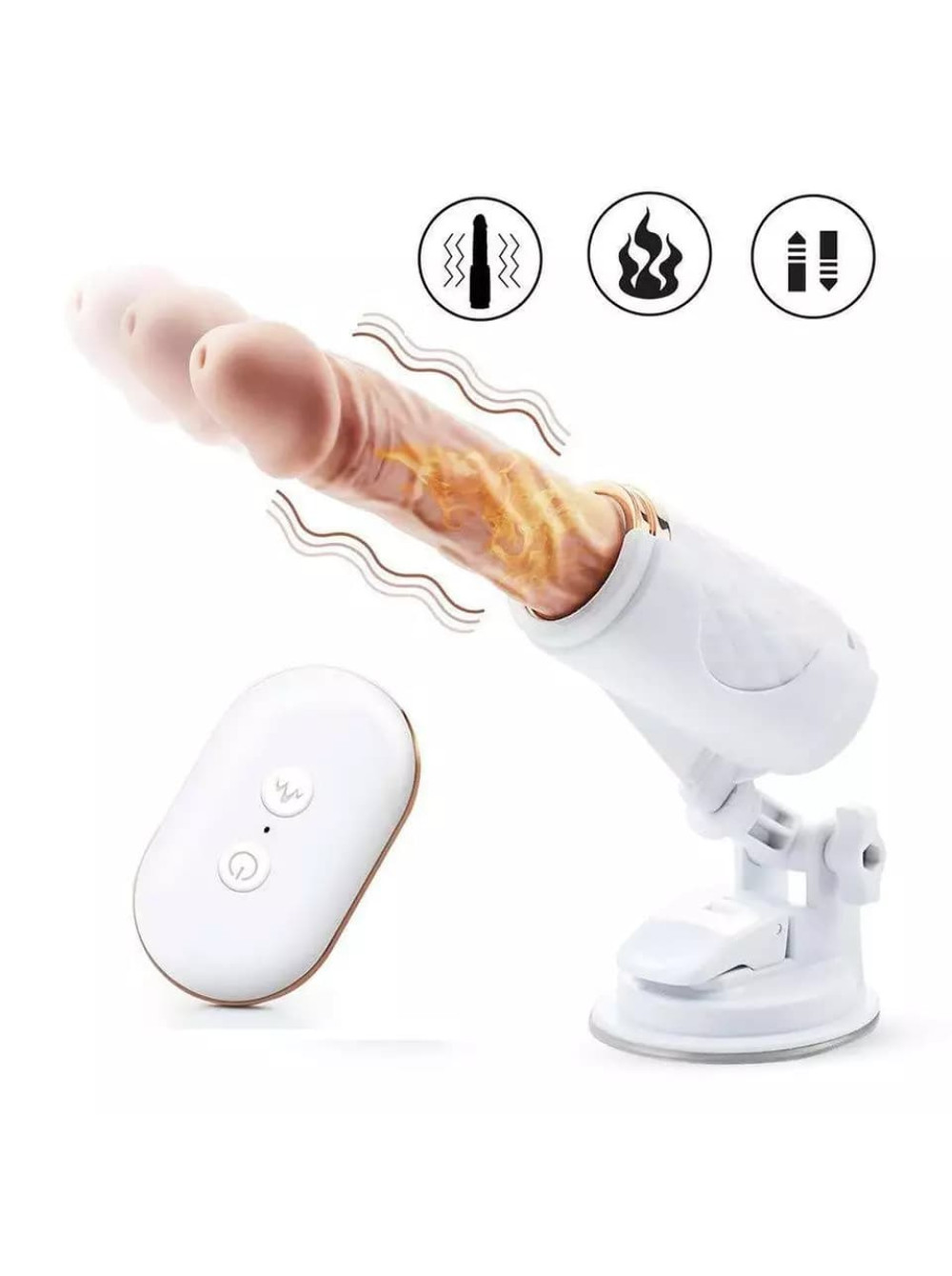 Вибратор-секс-машина телескопический с нагревом с ДУ