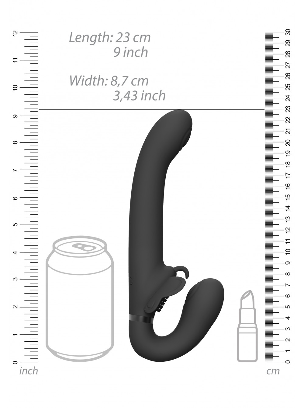 Satu – это безремневой страпон, который взял все самое лучшее от вибраторов линейки VIVE. Оснащен 3 мощными независимыми моторами: 2 импульсно-волновых в головке вибратора по одному для каждого партнера для активной стимуляции точки G/P, вибрационный мотор клиторальном отростке. При этом Satu достаточно тихий, не смотря на всю его мощь.