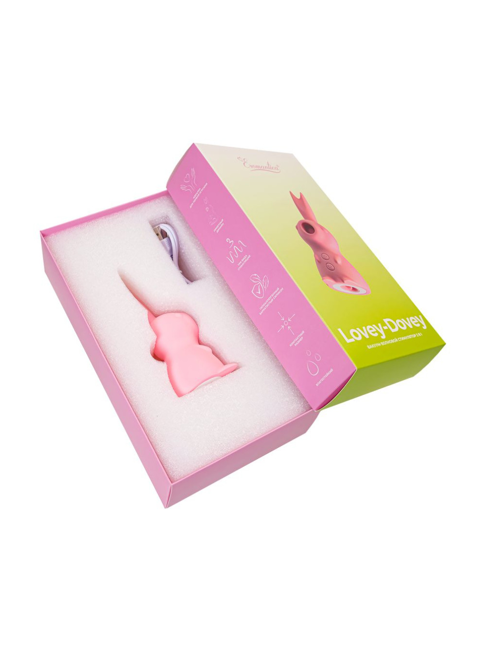 Стимулятор эрогенных зон в форме пудрового кролика Lovey-Dovey имеет три функциональных режима с широким спектром:
