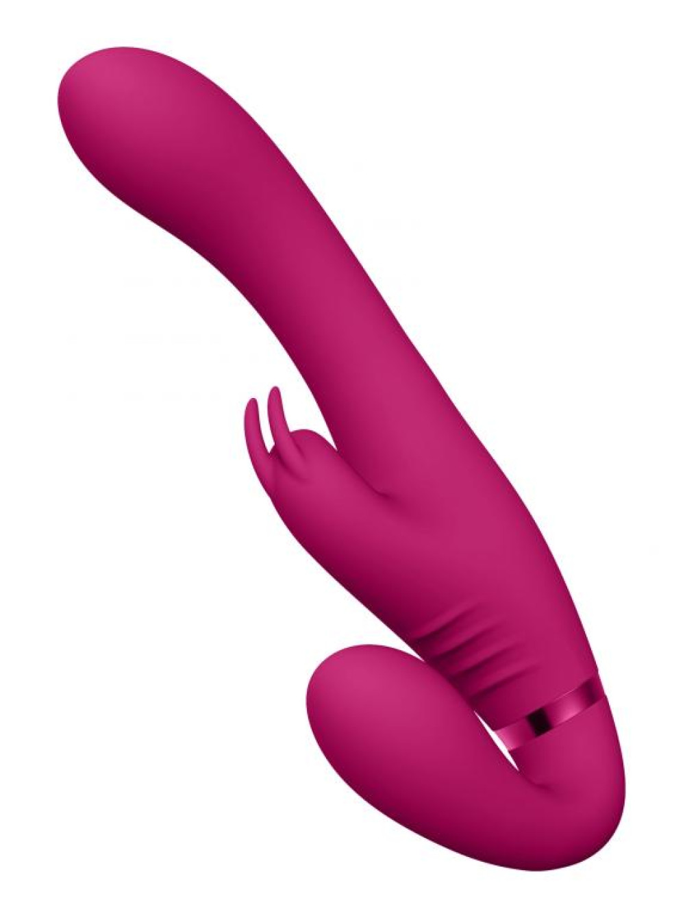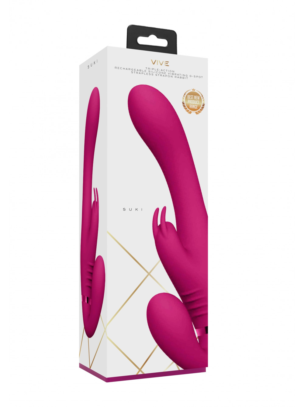 Suki – это безремневой страпон, который взял все самое лучшее от вибраторов линейки VIVE. Оснащен 3 мощными независимыми моторами: 2 вибрационных в головке ствола по одному для каждого партнера для активной стимуляции точки G/P и вибрационный мотор в клиторальном отростке. При этом Satu достаточно тихий, не смотря на всю его мощь.