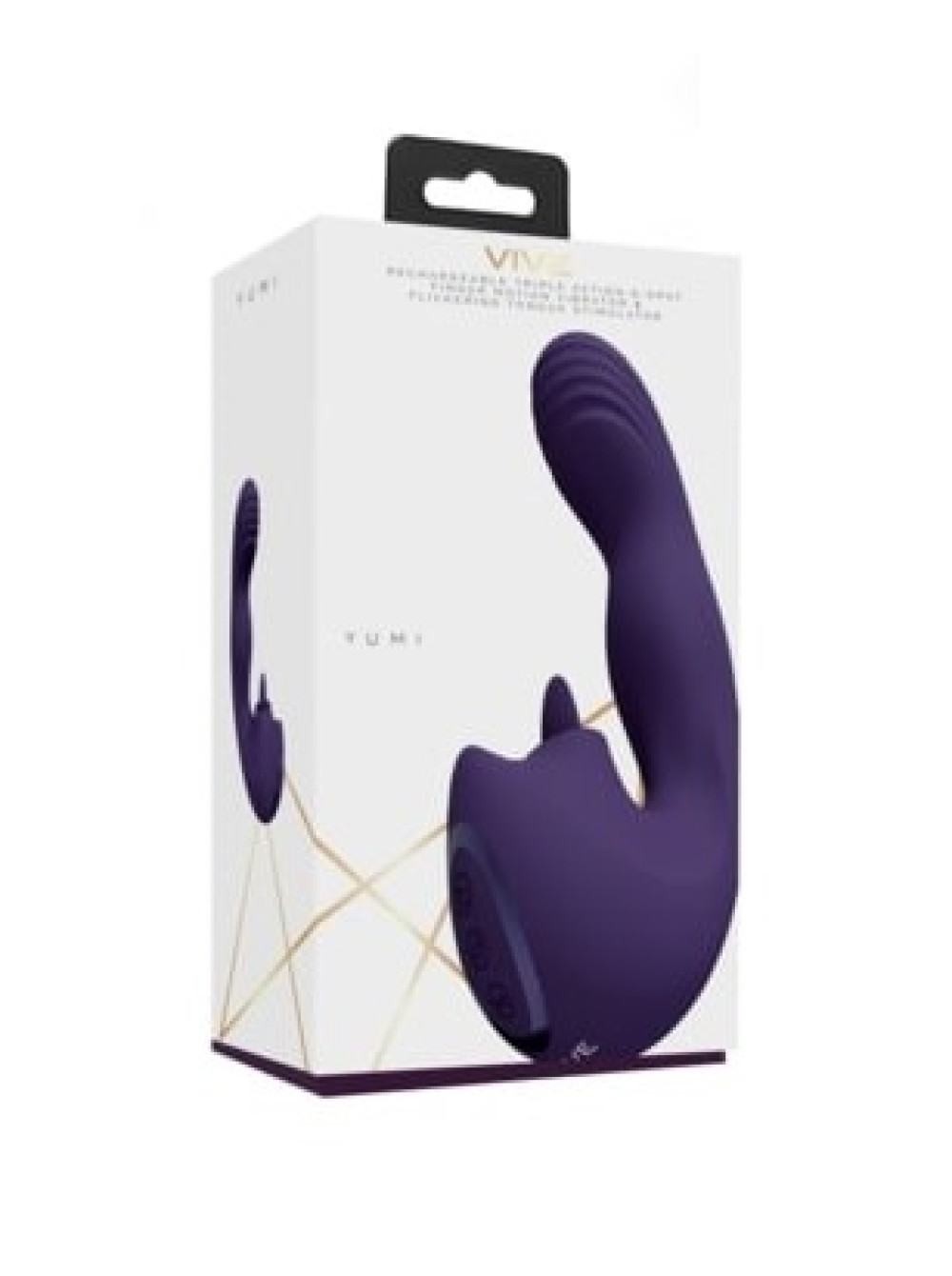 Вибромассажер Yumi с тремя моторами для точки G и мерцающим стимулятором язычка (фиолетовый)